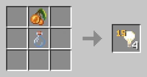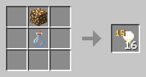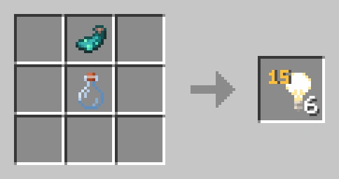 1 Bloc de Glowstone + 1 Bouteille = 16 Blocs de lumière (intensité 16)