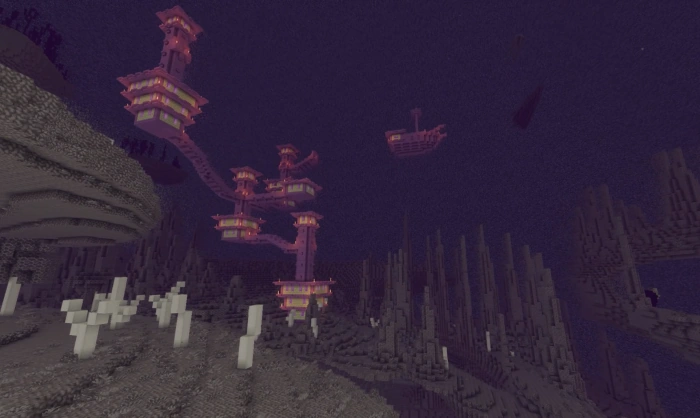 (new) NullScape (End Modifié) = l’end est totalement différent : nouveaux biomes, plus difficiles d’explorer sans être équipé. L’île d’arrivée dans l’End est devenue dangereuse.
