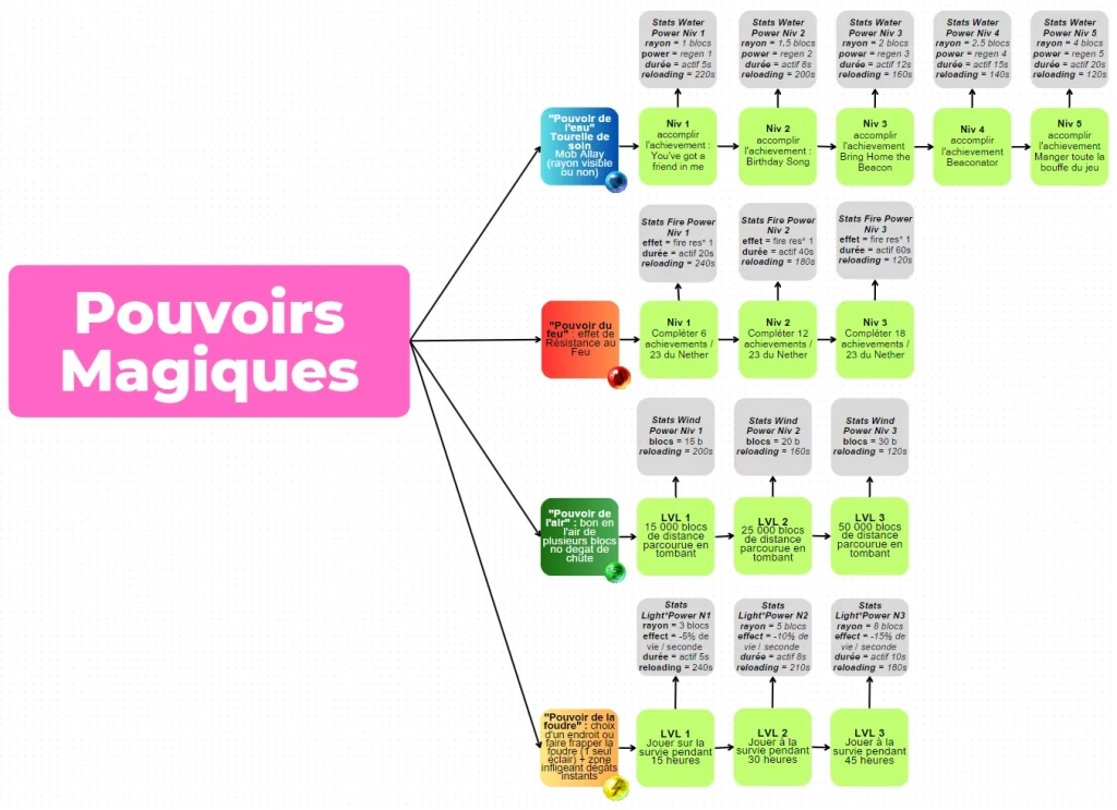 (New) Objets magiques : Chacun de ces objets à un pouvoir différent. Ils sont déblocable et évolutifs grâce à des achievements et des statistiques (voir les images ci-dessous des différents niveaux d’améliorations de chaque items). Par exemple, pour débloquer l’artéfacts magiques de vitesse, il faut parcourir 5000 blocs dans le monde pour pouvoir débloquer l’artéfacts et donc passer au niveau 1 de l’item. Tous les objets magiques (artéfacts et pouvoir magiques) sont rangés dans le Sac à objets magiques (cliquez ici pour voir le craft). Tous les objets magiques seront visible dans la section achievement de la PROJECT FAMILY.