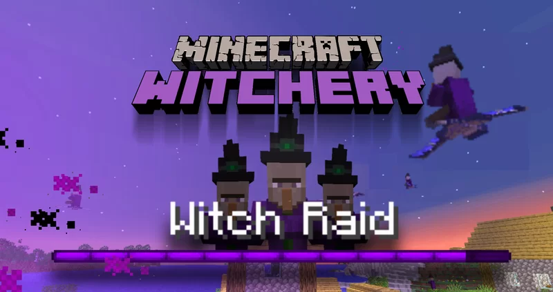 Witch Raids = aléatoirement, une sorcière maudite peut apparaître. Si vous venez à la tuer, vous obtiendrez un effet de mauvais présage. Dès que vous entrerez dans un village, vous lancerez un Raid de sorcières. Bonne chance pour toutes les chasser !